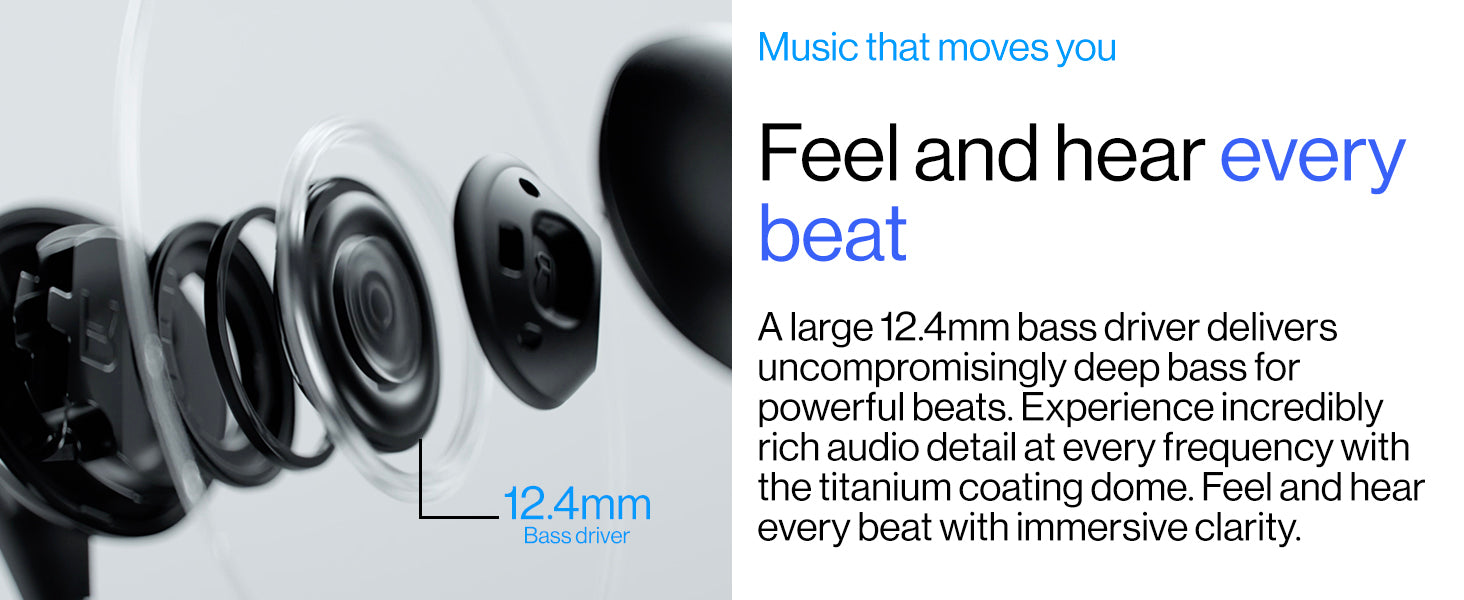 - A large 12.4 mm bass driver delivers uncompromisingly deep bass for powerful beats. Experience incredibly rich audio detail at every frequency with the titanium coating dome