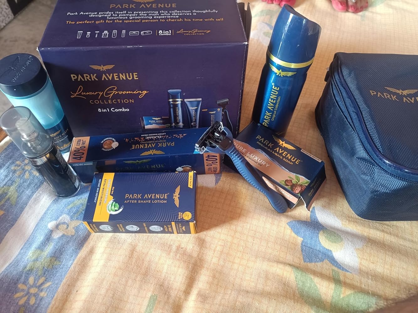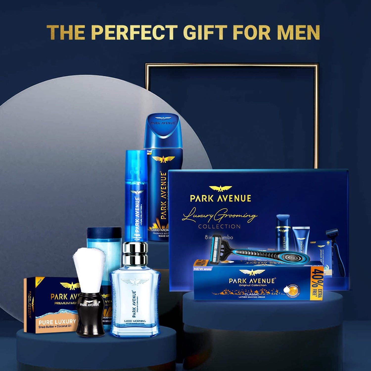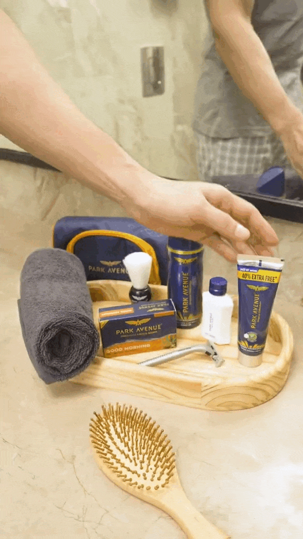 - CONTAINS: The Park Avenue Luxury Grooming Collection Kit includes Park Avenue Good Morning Deodorant for Men (150 ml), Park Avenue Good Morning After Shave Lotion for men (50ml), Park Avenue Park Avenue Premium Soap for Men's - Pure Luxury (125g), Park Avenue Classic Lather Shaving Cream for Men (84g), Park Avenue Shaving Brush for Men (1 unit), Apache Razor (1 unit), Pure Collection Spray (50ml), Free Travel Pouch inside